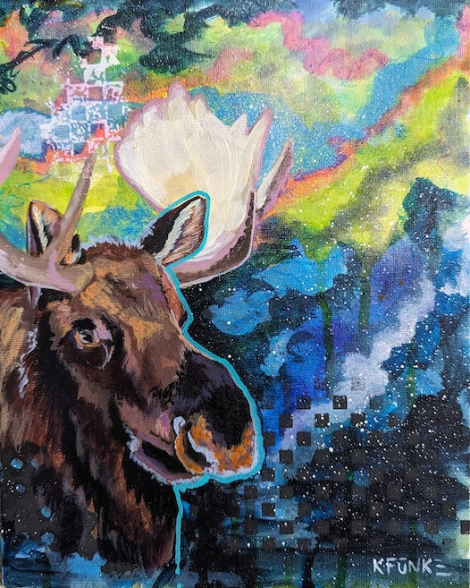 In this series, I play with abstract backgrounds inspired by the Northern Lights, and animals found inhabiting one of the prairie provinces of central Canada, where I have lived most of my life.
